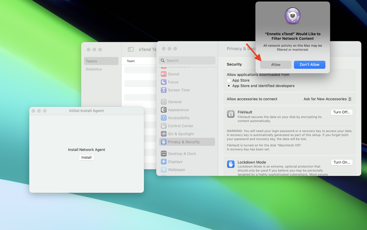 Next, your Mac will ask you whether to allow Ennetix xTend to filter network content. xTend does not block any network traffic. xTend only uses Apple’s filtering service to observe what network connections are occurring.