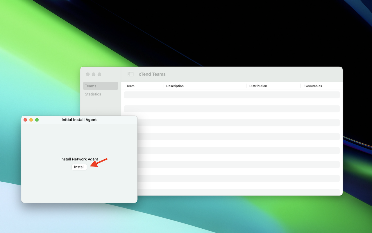 When xTend first starts, it tries to connect to its network agent. Because this this is the first time you are running it, xTend won’t find the agent, so it will open a window to prompt you to install it. Click the “Install” button.