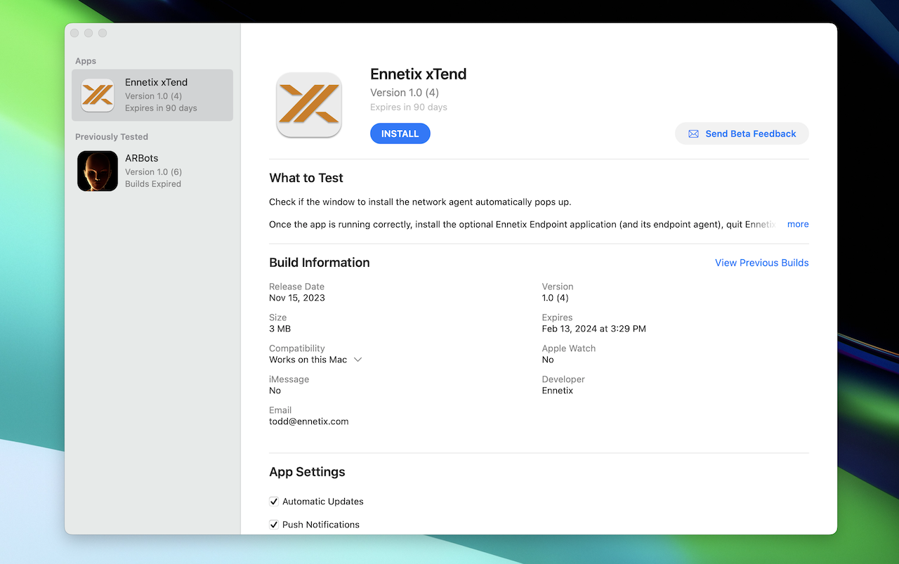 Install Ennetix xTend Beta from Apple’s TestFlight application