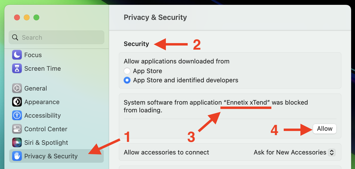 Because of Apple’s security policies, users need to take several steps before xTend can receive information about network activity on their Mac. The four steps (detailed below) are: